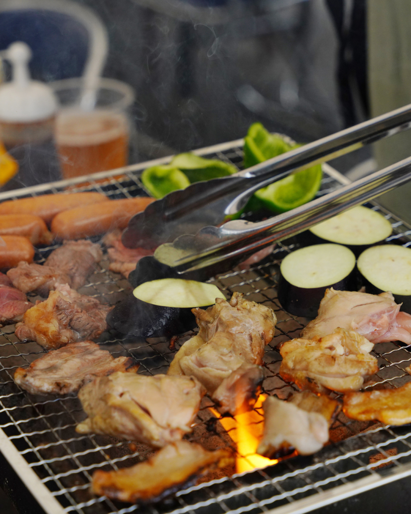 手ぶらでOK!新鮮や野菜やお肉と火おこし済の炭火コンロをご用意。グループごとの開放的なテラス席で、クラフトビール約6種類+ソフトドリンクの飲み放題が付けられます。