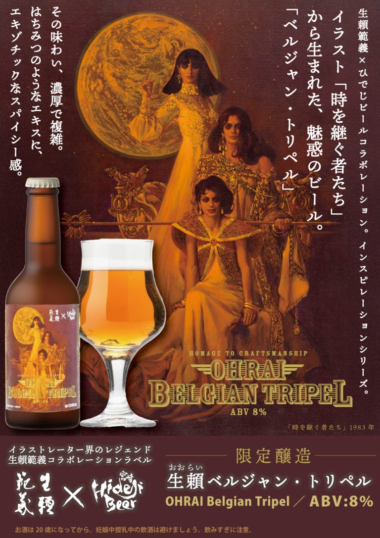 今回の題材となったのは、生賴範義 作『時を継ぐ者たち』(1983年)。SFアドベンチャー増刊「平井和正の幻魔宇宙Ⅱ」の付録ポスターとして発表されました。独特で幻想的、エキゾチックな世界観は、SFファンのみならず誰が見ても印象に残る作品です。ひでじビールの醸造士は、このイラストから受けたイマジネーションをもとに醸造レシピを作成、完成したのが今回の「生賴ベルジャントリペル」です。