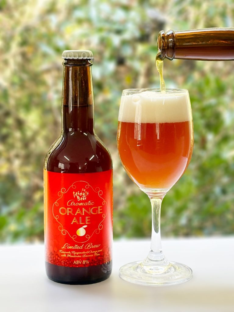 Aromatic ORANGE ALEは、宮崎のきんかん・日向夏の果汁と、オレンジピールを使い、生クリームやチョコレートなどのスイーツを引き立てる味わいを設計しました。