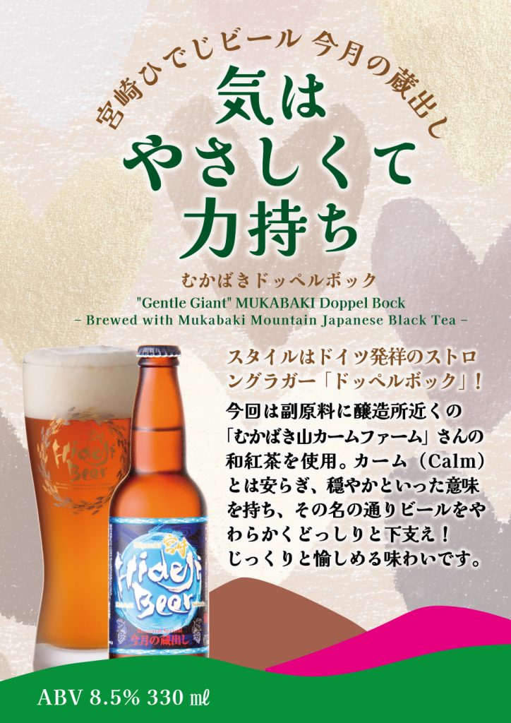 たっぷりの麦芽&副原料に、醸造所のある「むかばき山」の茶園「むかばき山カームファーム」さんの和紅茶を使用した、「むかばきドッペルボック!」